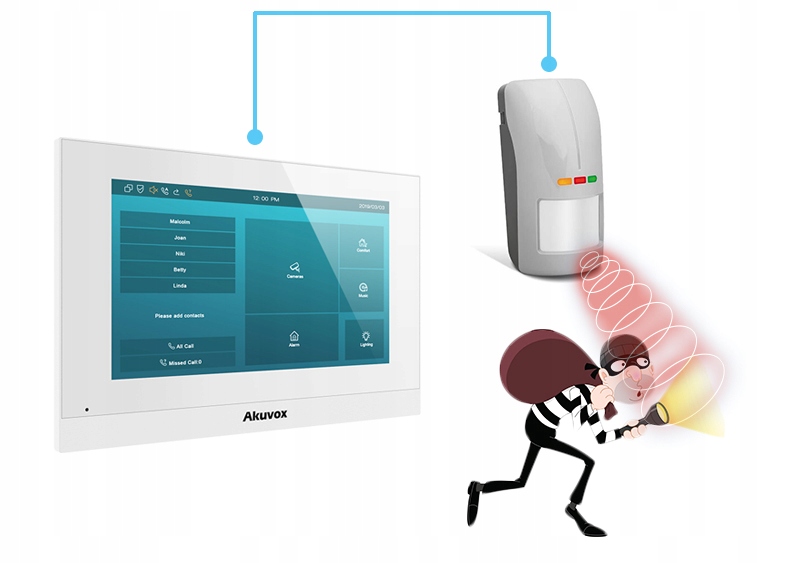 Monitor może działać jako prosty system alarmowy po podłączeniu dodatkowych czujek ruchu.