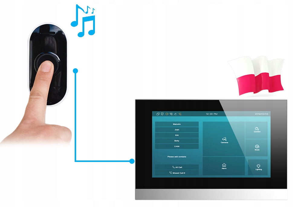 - Otrzymasz powiadomienia PUSH o dzwonieniu do wideodomofonu.